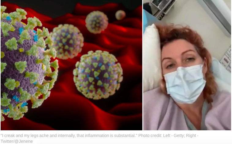 她还感觉自己整个身体都有关节炎,“当我从椅子上站起来的时候,看起来像个85岁的人。我浑身咯吱作响,腿疼,而且体内有大量炎症,我的身体排斥各种物质进入体内。”