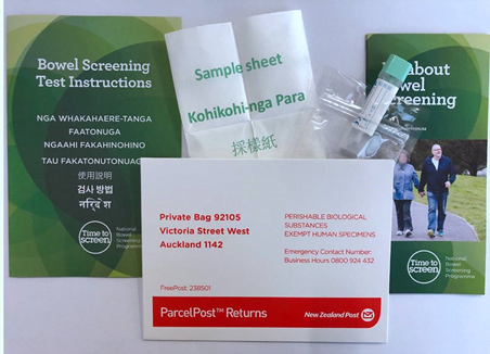 新西兰的全国肠道癌症筛查项目,是新西兰卫生部主导的三大筛查项目之一(另外两项为乳腺癌筛查和宫颈癌筛查)。60到74岁之间的新西兰居民,都有资格享受两年一次的免费肠道癌症筛查。