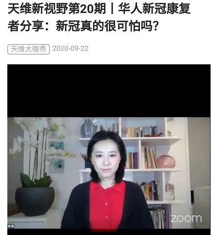 9月22日,一位曾经在新西兰得过新冠的华人康复者,参与了我们的天维新视野直播第20期。