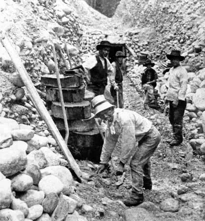 随着人数的增加,华人开始向其他有金子的地方进军,这张West Coast的旧照显示工作条件十分艰苦。
