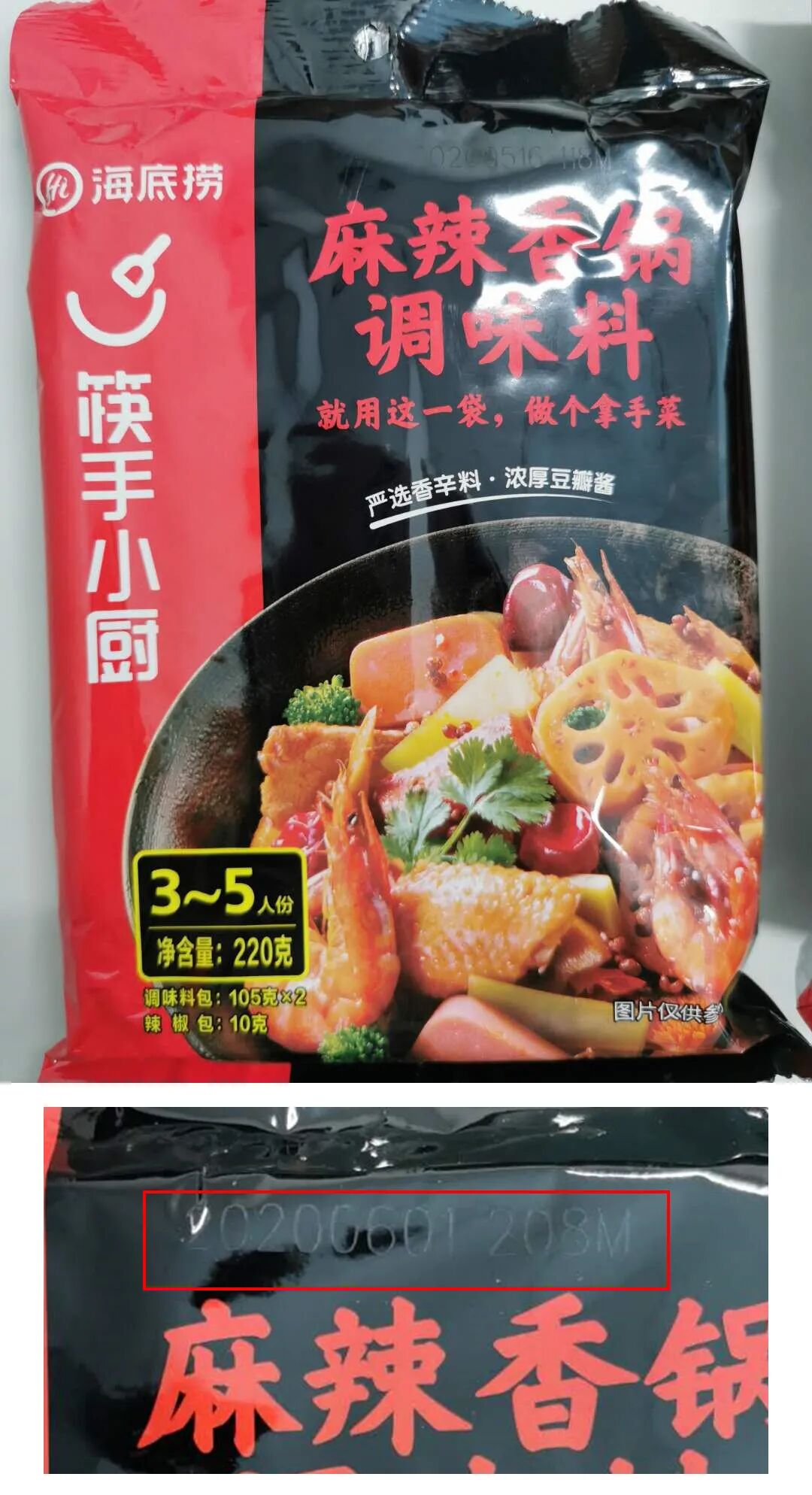 据通告,受召回产品的原产国为中国,名称为海底捞麻辣香锅调味料,重量为220g,批号为20200601和20200516。