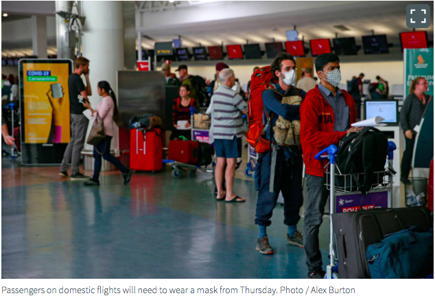 昨天下午,在内阁会后新闻发布会上,总理Jacinda Ardern和疫情响应部长Chris Hipkins宣布:从本周四开始,奥克兰的公共交通和所有国内航班上都必须戴口罩。