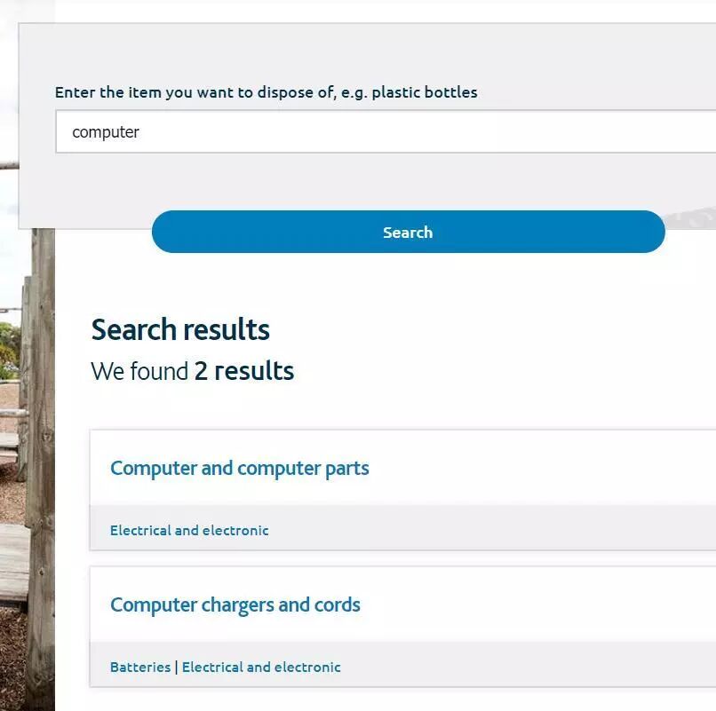 这个页面中你可以在搜索栏输入你不知道该怎么扔的物品,比如,电脑。