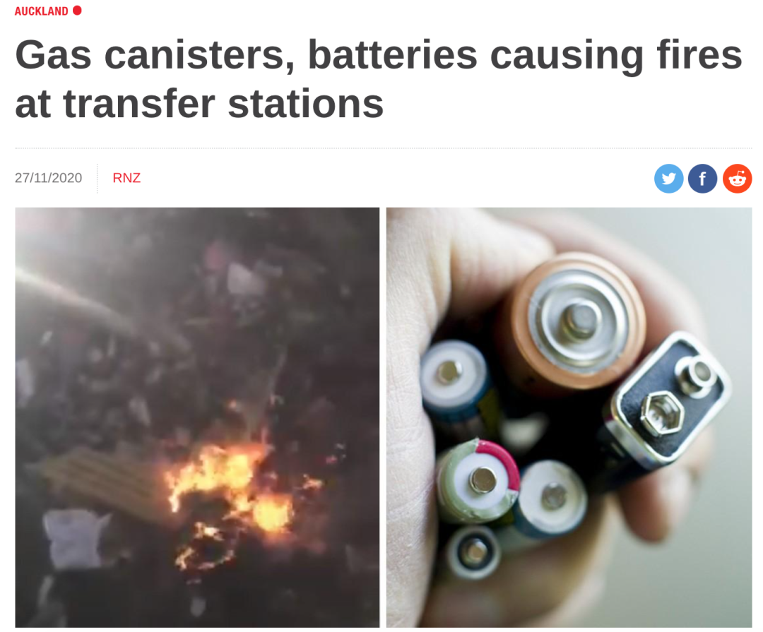 日前,奥克兰市议会再次发出警告:不要再把电池或燃气罐和普通垃圾或可回收垃圾扔在一起了!以免它们会在垃圾车里爆炸,或在转运站和垃圾场引发火灾!
