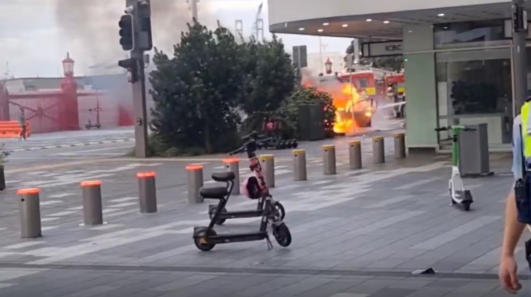 【突发】奥克兰CBD一辆车起火 现场浓烟滚滚