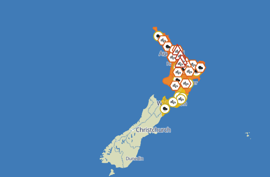 此外,北岛大部分地区的降雨警报已由黄色升级为橙色,部分地区降雨量预计达到150-180 毫米。