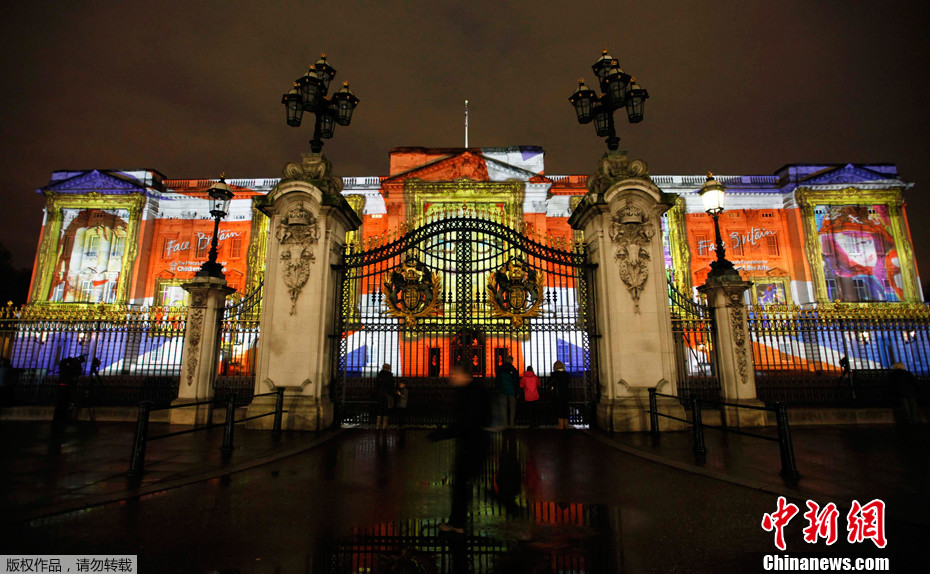 20万幅儿童画像投影白金汉宫 拼成英女王肖像