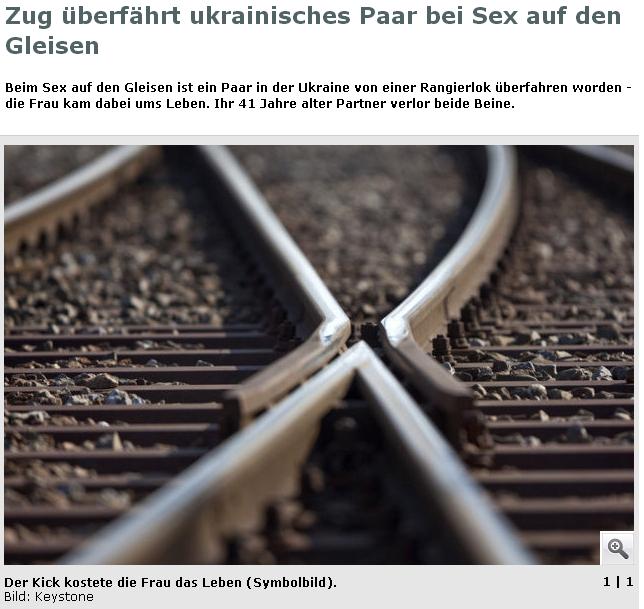 - 乌克兰情侣铁轨上做爱遭碾压 一人死亡一人重伤
