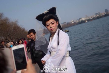 杭州男子扮白娘子逛西湖 被指像“如花”(图)