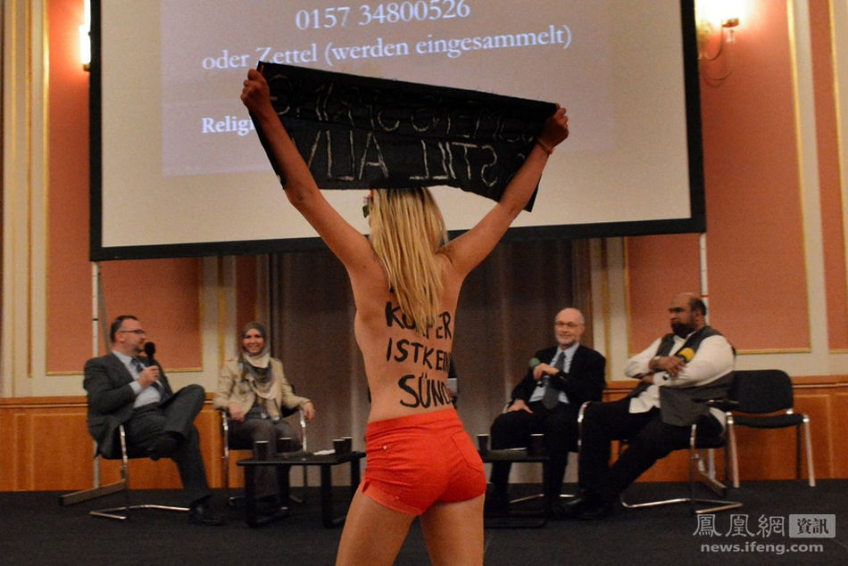 裸女闯德国柏林市政厅示威 被警方制服带走(组图)