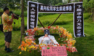 - 绝症大学生街头办"追悼会" 曾向企业家下跪借钱(组图)
