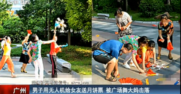 - 小伙用无人机给女友送月饼券 被广场舞大妈击落