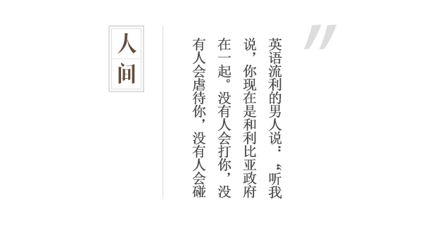 英语流利的男人说:“听我说,你现在是和利比亚政府在一起。没有人会打你,没有人会虐待你,没有人会碰你。”