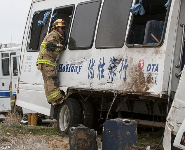 载中国游客大巴在美国遭遇严重车祸 1死26伤(组图)