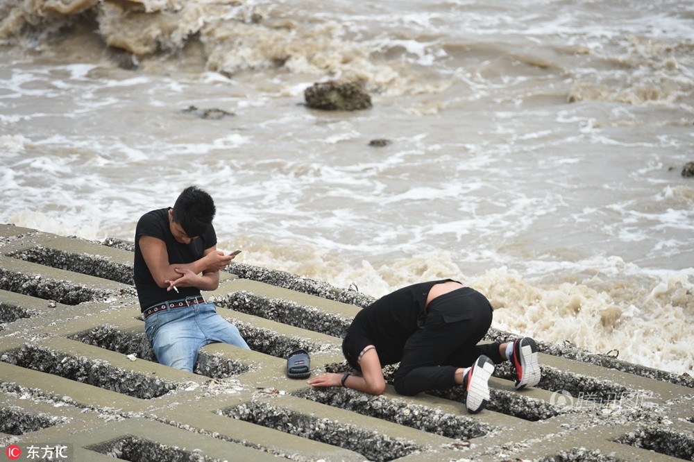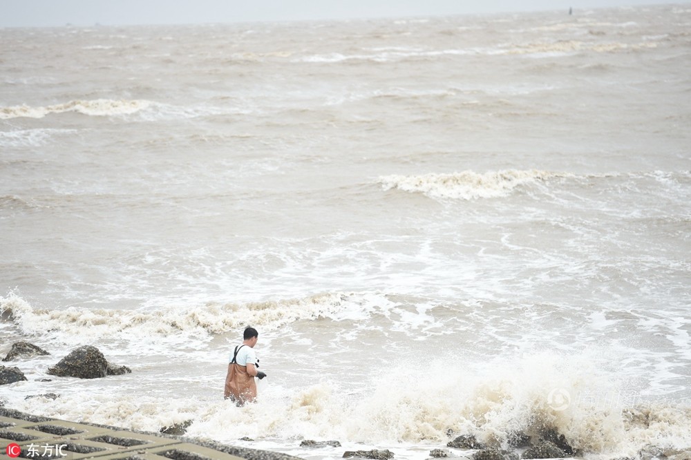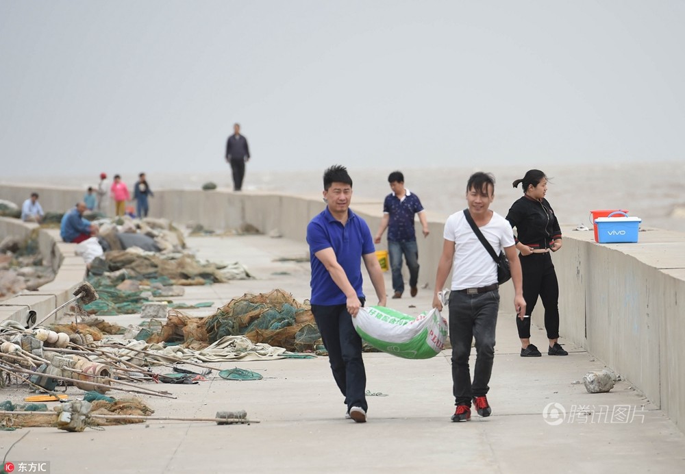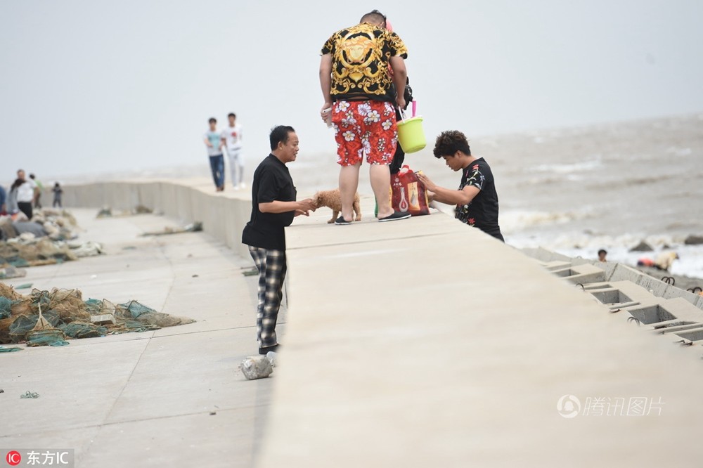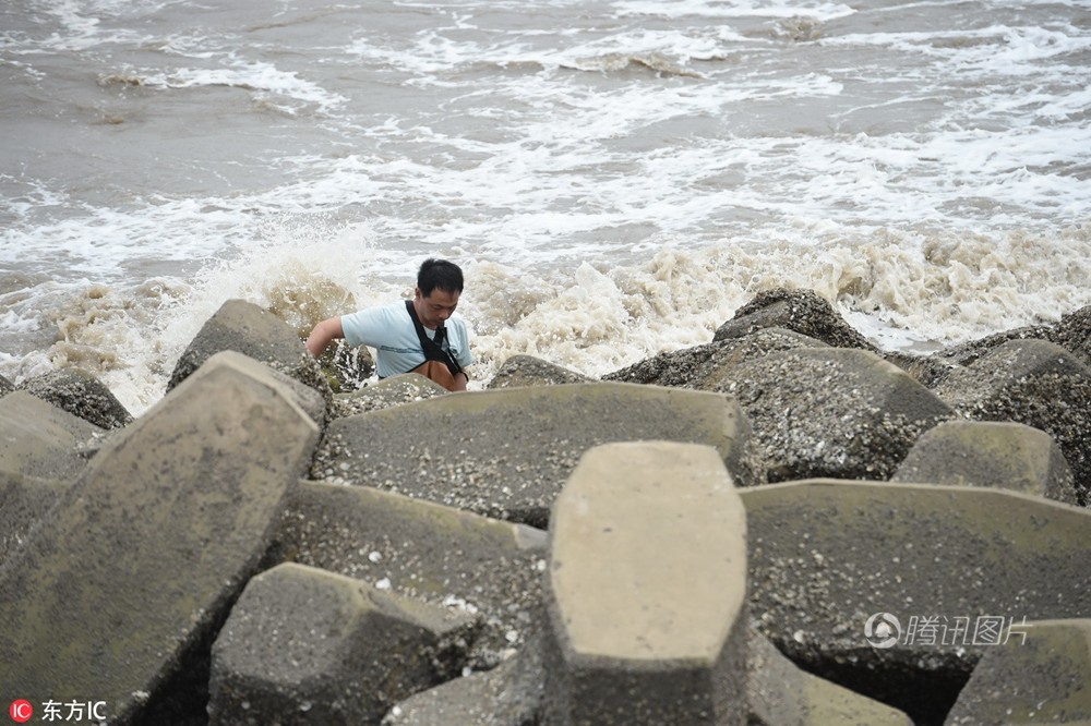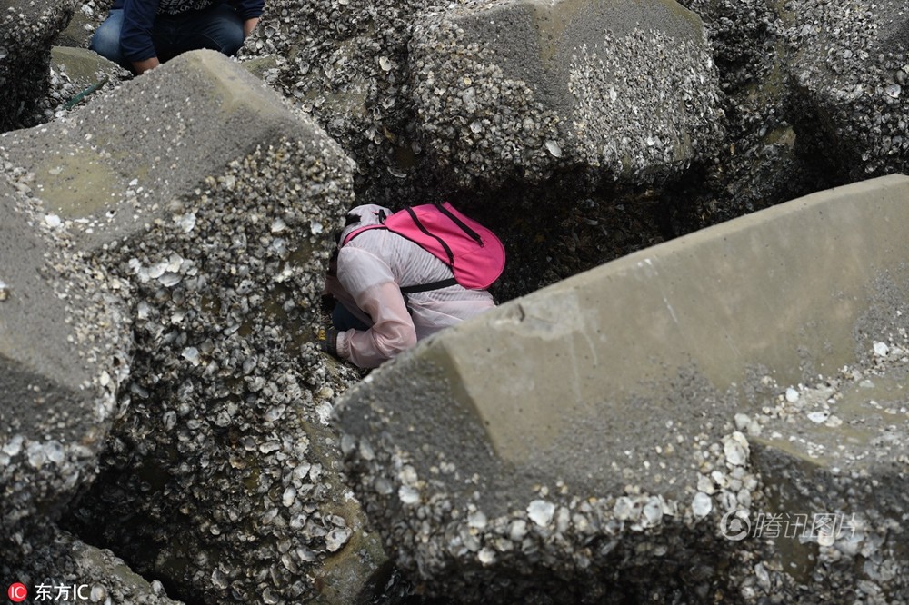 真的拼了!游客冒大风浪在天津港海边挖生蚝(图)