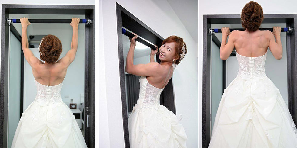 - 台湾新娘婚礼上秀引体向上 强壮肌肉看呆宾客