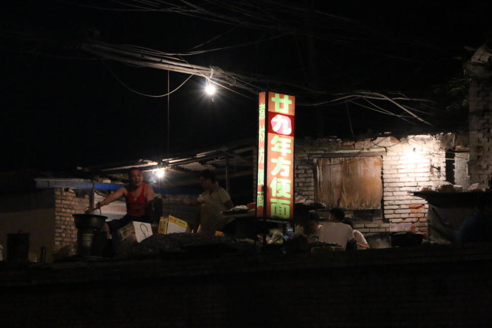 火车站方便面现在开在一片危房的边缘,年久失修的房屋,简陋的临时棚屋。“以前一直开在对面,这段时间搬到这个台台上了,不知道是不是人家有人管的不让摆了……”小摊儿的一位常客王女士这样说。