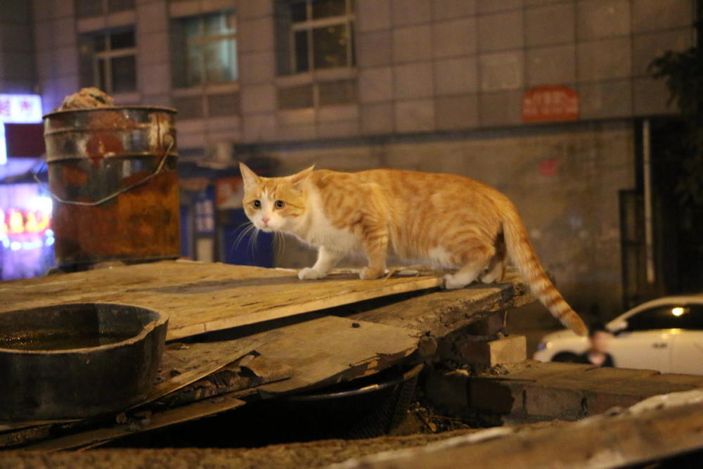每天晚上开摊,总有几只小猫陪着摊主。老板说过自己夜里出摊,像猫一样。