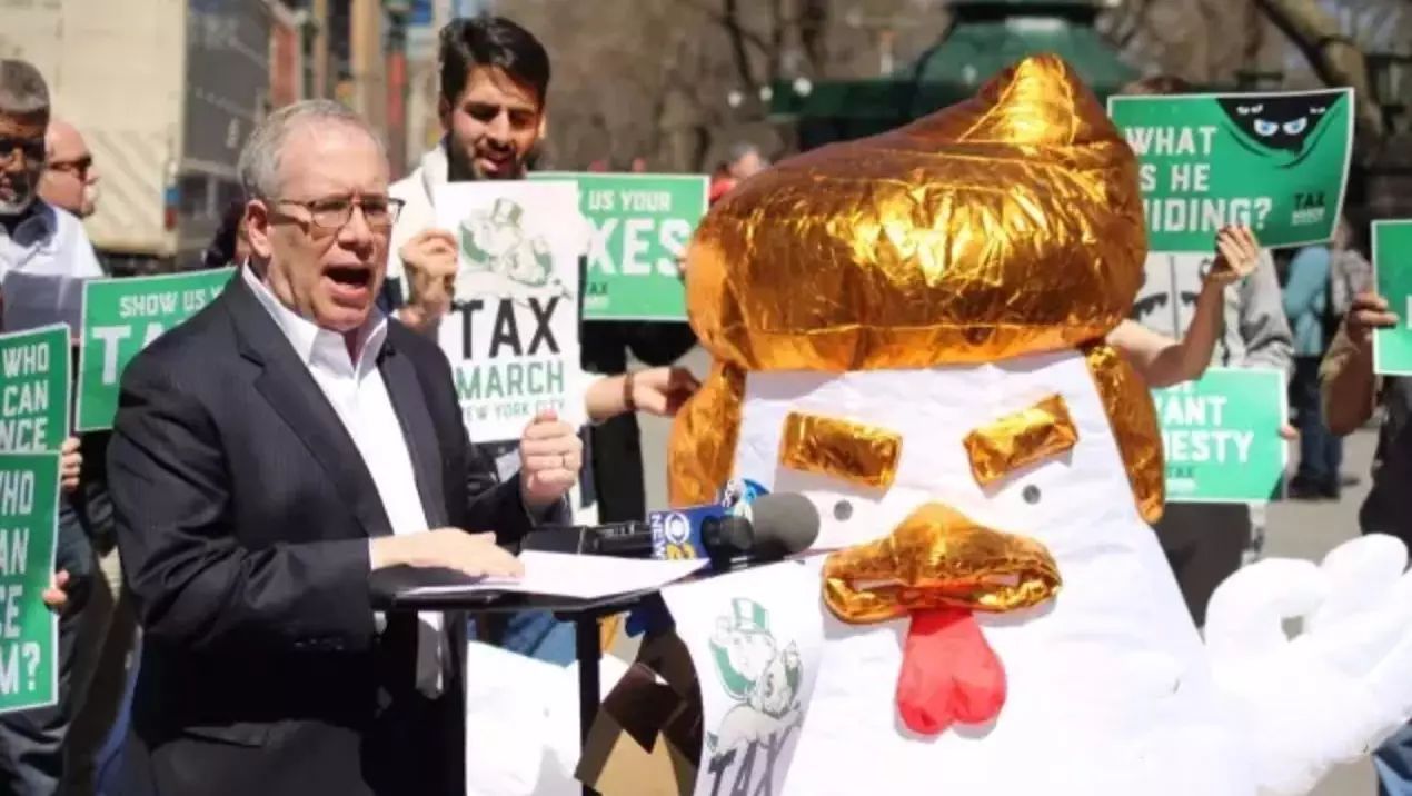 随后,它立刻鸡不停爪地参加了旧金山要求总统公布自己报税资料的游行活动。