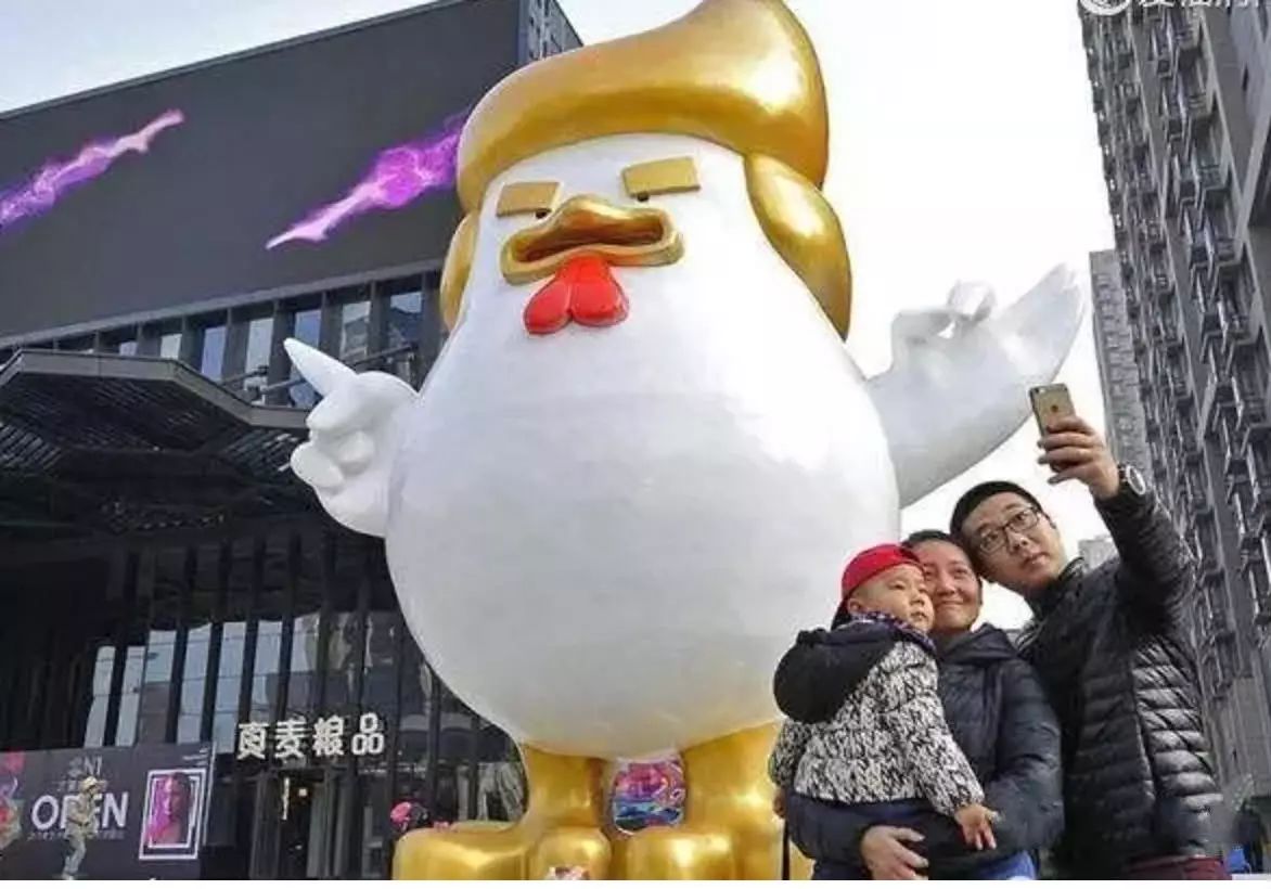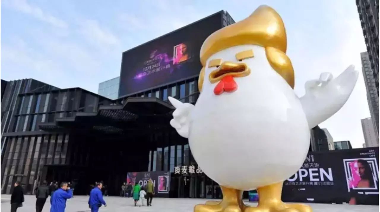 但雕塑做好之后,中国的吃瓜群众们都觉得,哎哟,这只鸡不错唷。