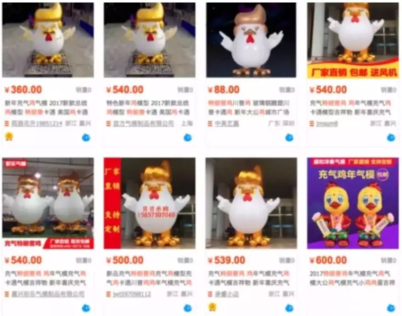 就连某宝上,也有许多商家推出了同款充气川普鸡。