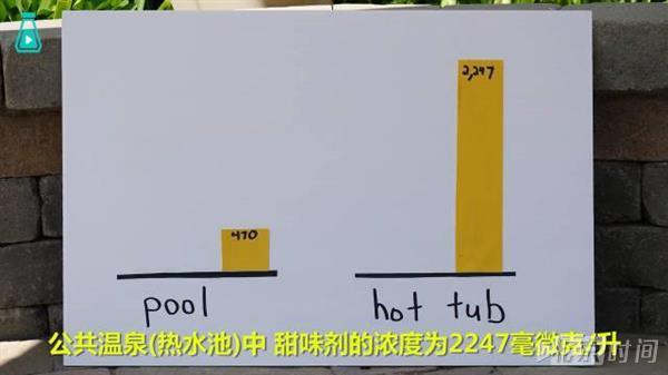 Lindsay曾经抽样调查了20个公共泳池和10个公共温泉,其中公共泳池里甜味剂的浓度为470毫微克/升,而公共温泉(热水池)中甜味剂的浓度为2247毫微克/升。