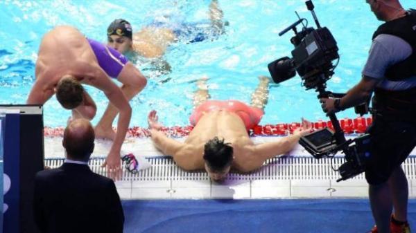 200米自夺金后,孙杨被拍到累瘫在泳池边,许久才站起来