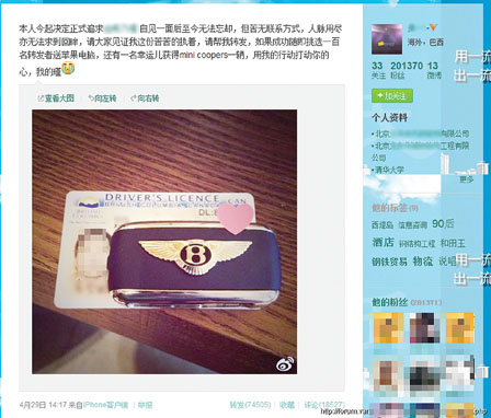 - 温哥华华裔学生网上炫富 开出名车厚礼 欲求女星电话