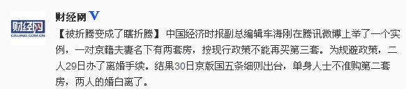 - 京籍夫妻为多买房离婚 次日细则出台发现“白离”