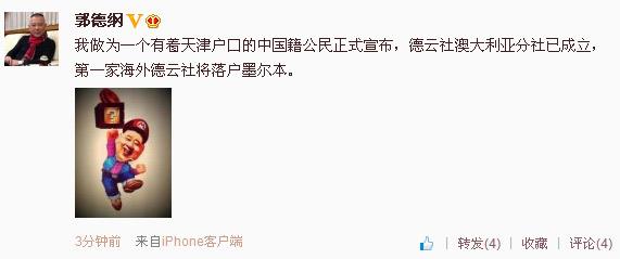 - 郭德纲回应“移民澳洲”:天津户口中国籍公民(图)