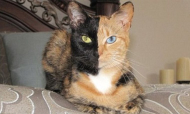 - 阴阳脸“双面猫”走红网络 左右脸颜色不同(图)