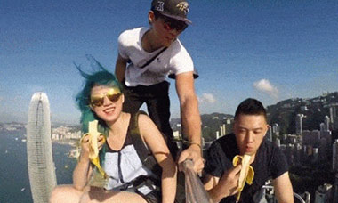 - 港3名青年攀346米高楼 边吃香蕉边自拍(组图)