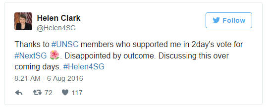 - NZ前总理联合国秘书长竞选遇挫 约翰基为她加油