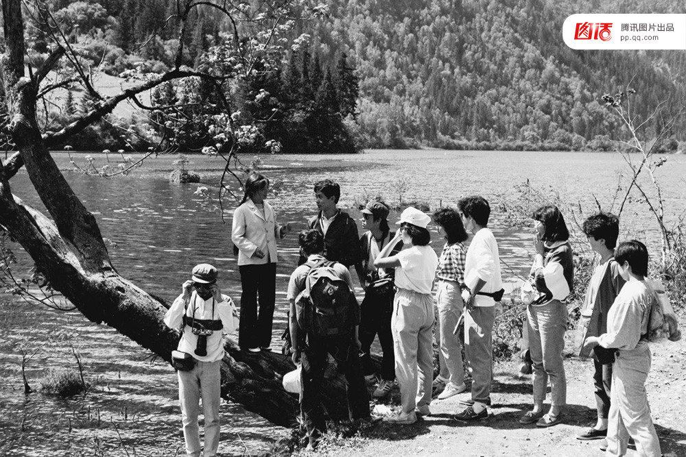 作为旅游的带队人和宣讲者,导游本应是一个有素质且受尊重的职业。我国导游人员的归属经历了从“外事接待人员”到旅行社员工,再到社会职业者的变化过程。图为1985年,九寨沟风景区导游员郭崇英(左二)在熊猫海向海外游客介绍说:熊猫常来这里饮水。新华社记者 李生才 摄