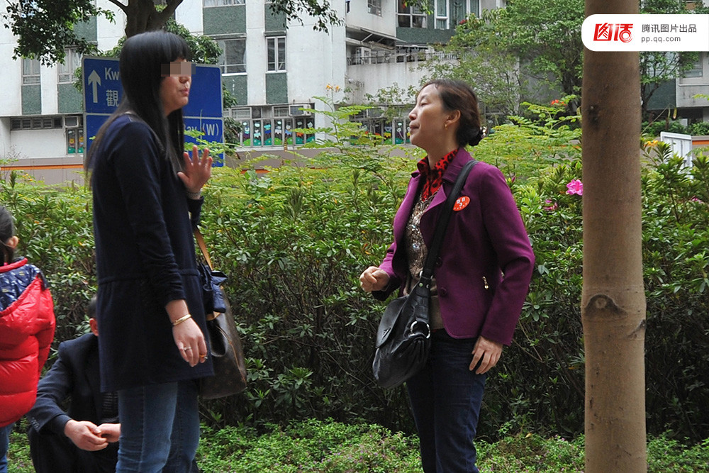 图为2013年2月13日,香港KJ珠宝店外,来自四川省眉山市的游客在与旅行社导游理论,该导游对她用“不买没良心”的话语侮辱她。刘德斌/视觉中国