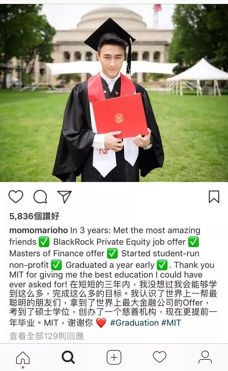 后来他选择了进入麻省理工学院就读,只花了3年的时间就完成了4年的学业。2016年3月,何猷君考进美国麻省理工学院(MIT)的金融硕士,是史上最年轻的学生,那年他才21岁。