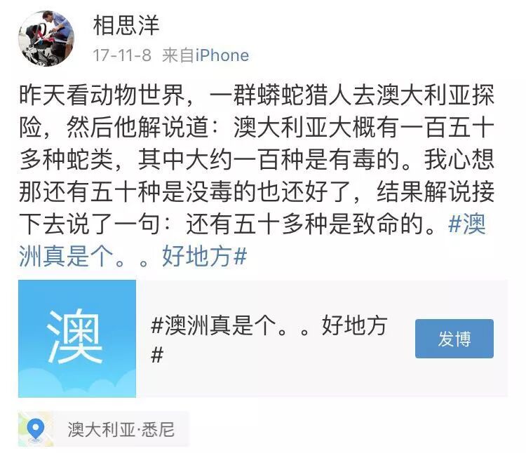 " 去澳洲我怕是活不过三集。。"