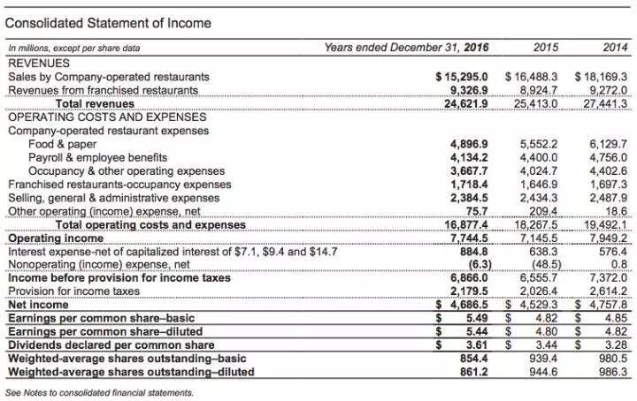 看麦当劳财报的时候,不要被它用的科目名称迷惑,只有先搞懂麦当劳的商业模式,才能用正确的方法去计算数字。