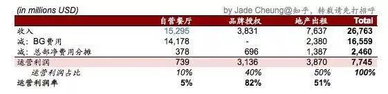 结果是,地产出租贡献了50%的运营利润,品牌授权占40%,而自营餐厅业务只贡献了10%的运营利润。