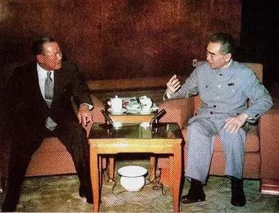 1972年2月,周恩来在机场迎接美国总统尼克松。这是美国有史以来第一位出访未建交国家的总统。