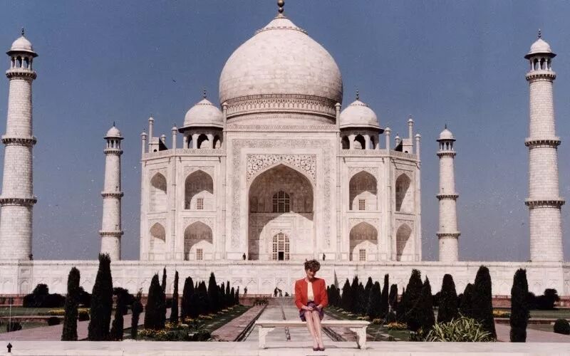 去印度访问,在戴安娜曾经坐过的泰姬陵前面,他们坐在同一个位置照相。