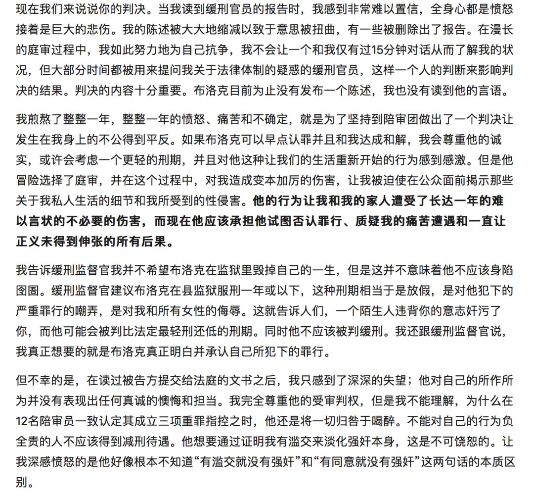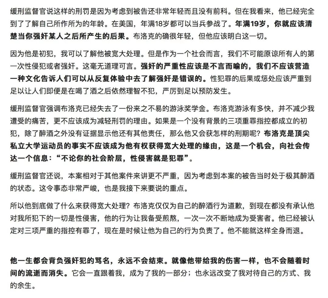 23岁的受害女生在给法官的陈情报告中,描述了这一不堪回首的经历给她造成的伤害。