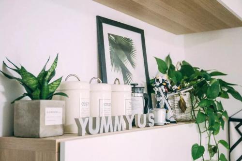 水彩插画+绿植是这个小家的标配,