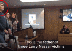 法庭没有准许他的要求,这名父亲突然冲出证人席冲向纳萨尔,但被在场警员制服。在被制服的那一刻他的口中还吼着:“给我一分钟,让我教训一下这个混蛋!只要一分钟。”