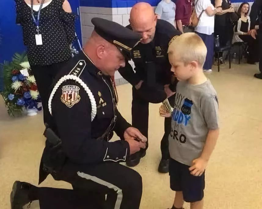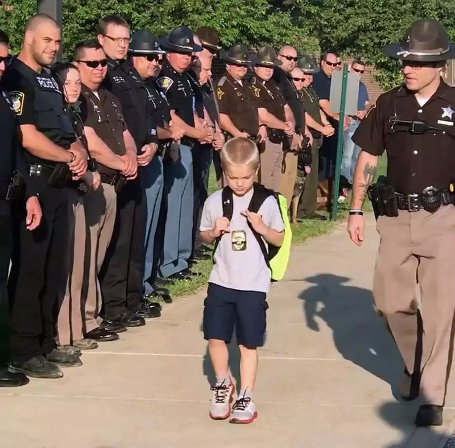 父亲殉职后,5岁小男孩上学那天,门口站了70名警员···