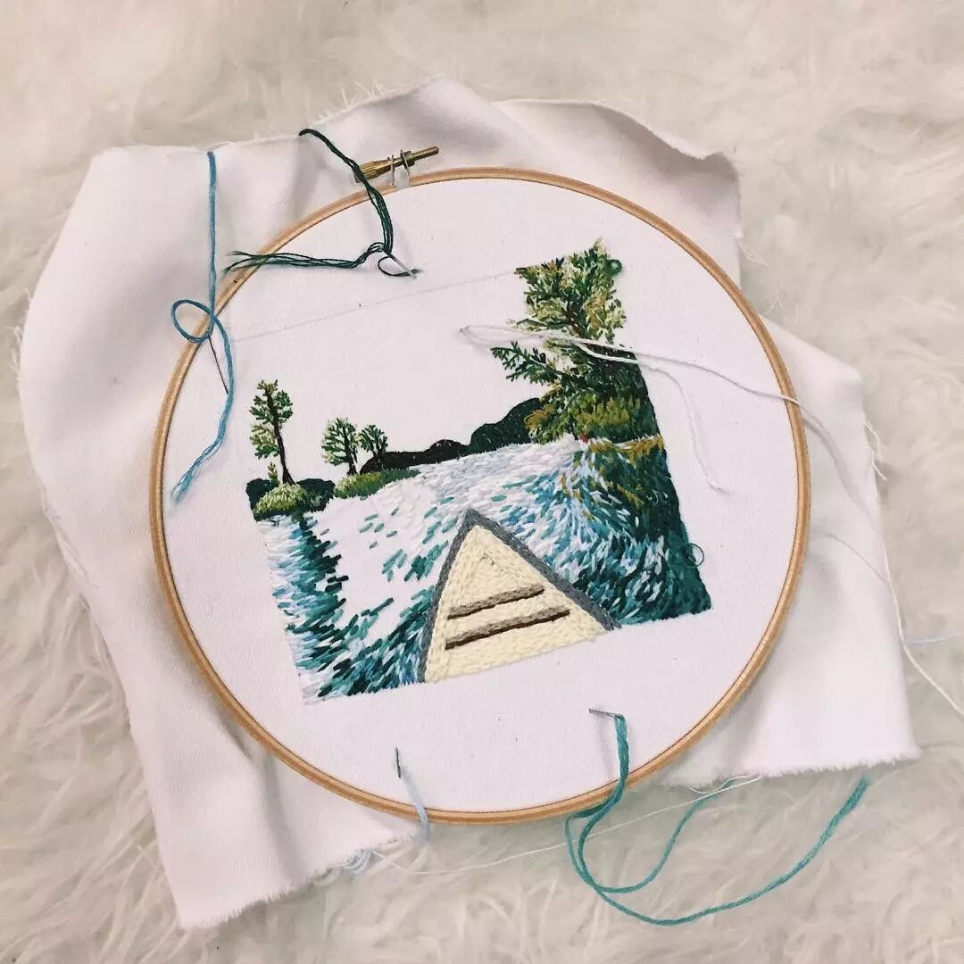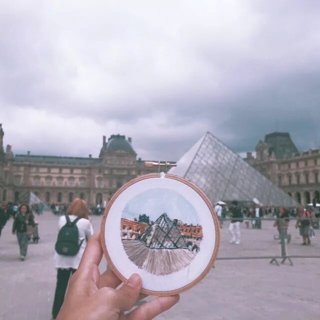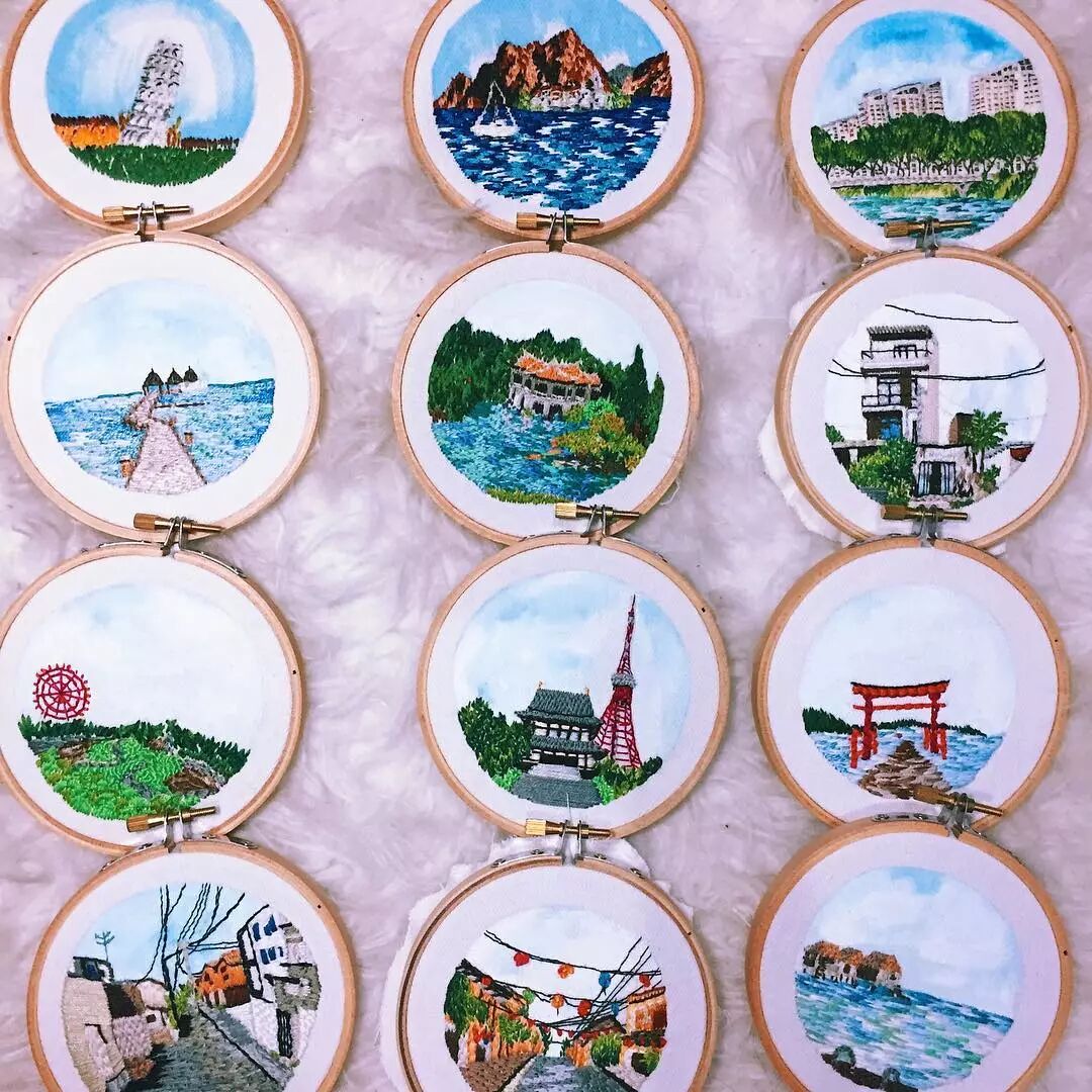 于是本身就热爱旅游的Teresa放下了笨重的单反,开始学会用刺绣来充当旅途中的相机。