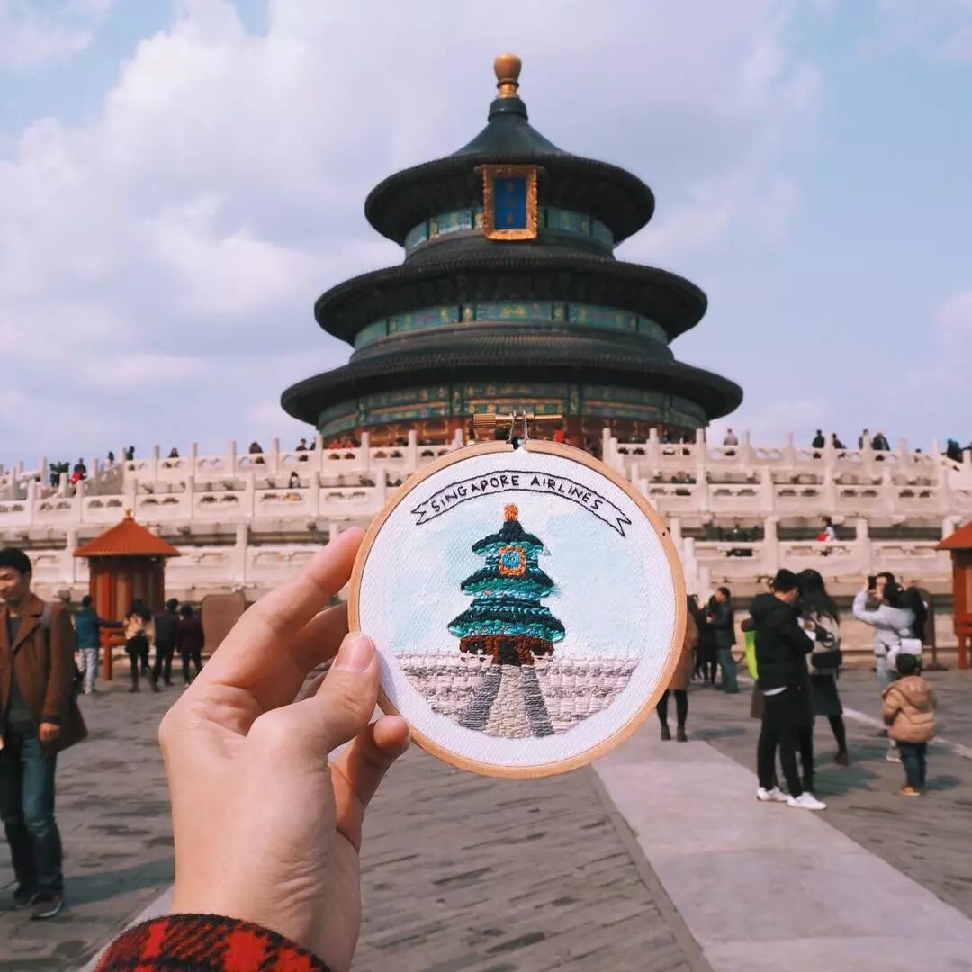 惊艳!新加坡女孩环球旅游不带单反,却用中国刺绣“画”出全球美景