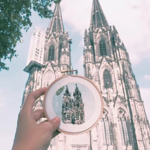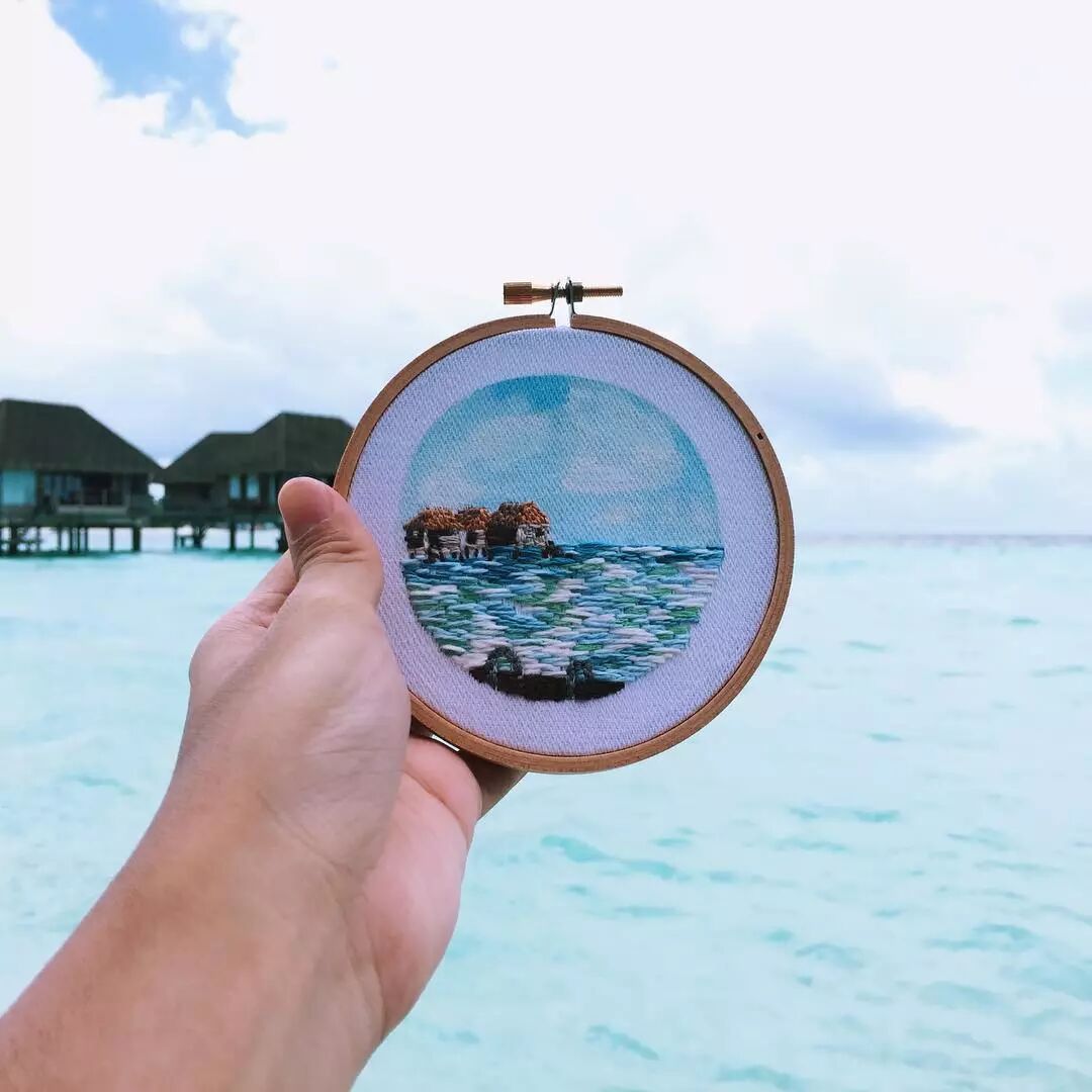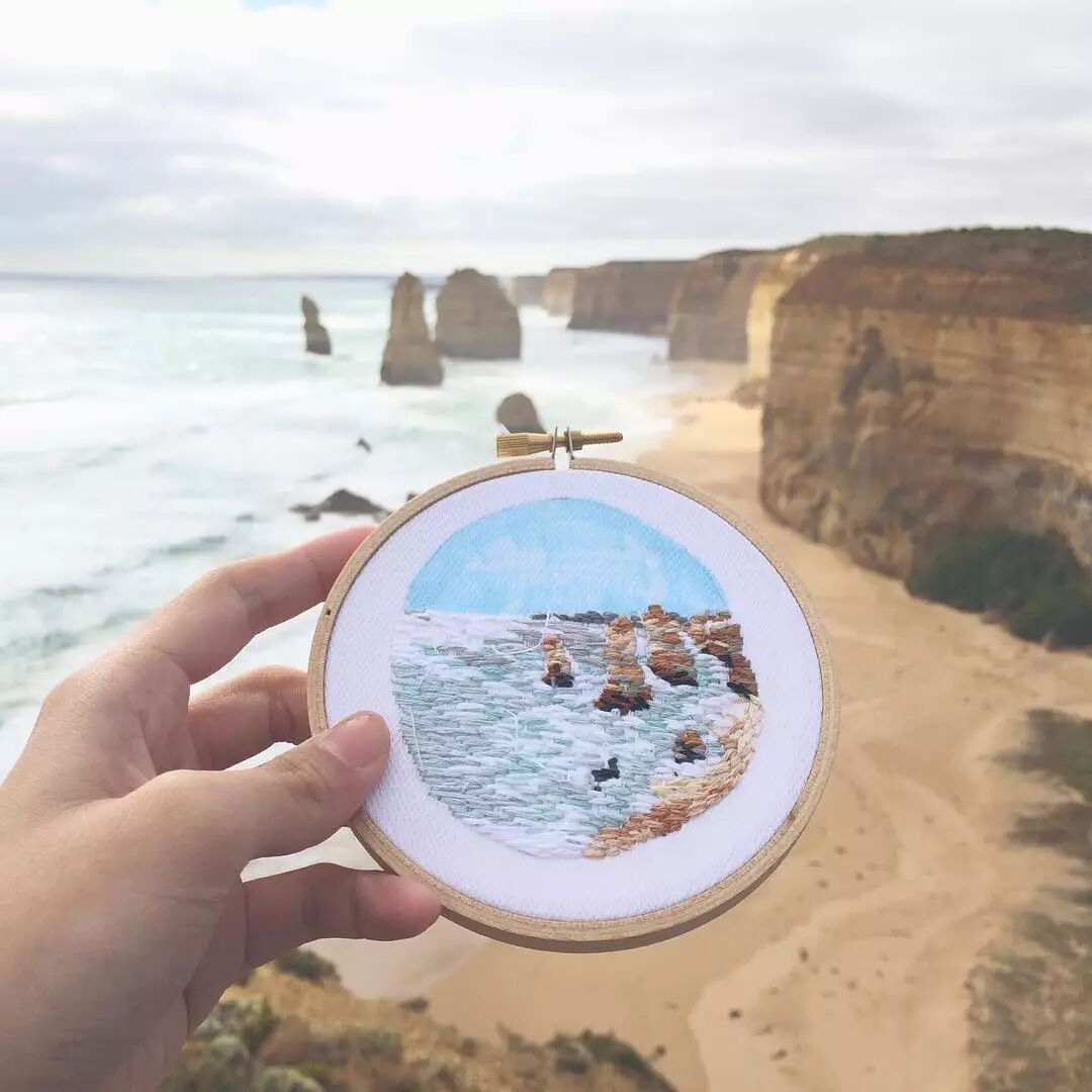 她还把这些作品都放到了Ins上,给这个系列取名叫“Sew Wanderlust”(刺绣漫游)。
