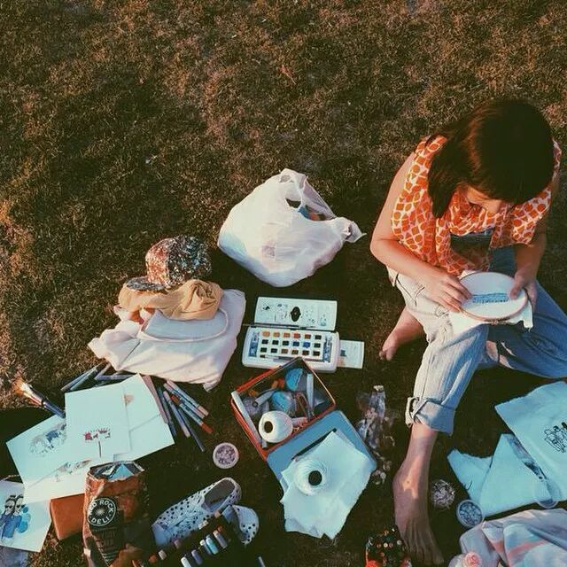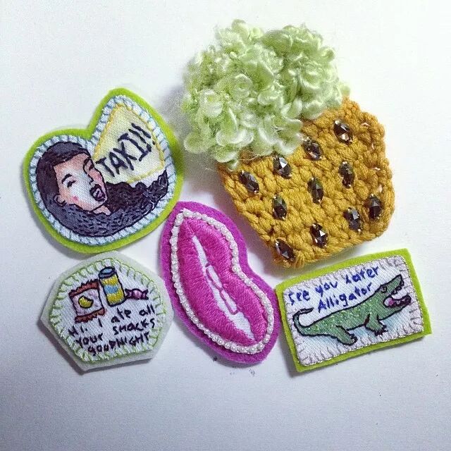 在Teresa的Ins里,这些好看的小圆刺绣,都是她自己按照所到的景点,现场亲手绣的!