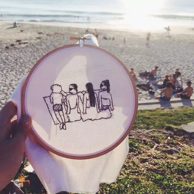直到有一天她和男朋友一起到海边玩,闲来无事的她拿起了手边的针线,按照海边人们休息的样子,绣了一副粗糙的作品。